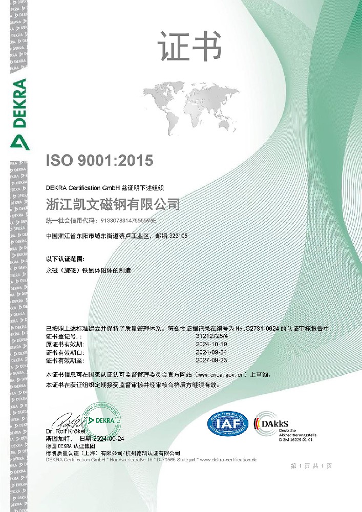 本公司國家高新技術企業(yè),是集科研、生產(chǎn)、銷售為一體的永磁鐵氧體磁性材料專業(yè)生產(chǎn)廠家。 公司自主研發(fā)生產(chǎn)的永磁鐵氧體超大、超薄、超小瓦形、矩形、環(huán)形磁體、高電阻磁體、高穩(wěn)定、抗干擾、低溫度系數(shù)磁體、高磁晶各向異性場磁體等,正批量應用與變頻壓縮機、汽車電機、風力發(fā)電機、傳感器及音響、傳動等領域。 公司擁有國內外先進的自動化、智能化制造永磁鐵氧體磁體生產(chǎn)線,充分運用了“機器換人”、ERP、機聯(lián)網(wǎng)技術,實現(xiàn)了產(chǎn)品的高技術、高質量、高效率生產(chǎn)。具有年產(chǎn)20000噸鐵氧體預燒料和20000噸產(chǎn)品約3000多種規(guī)格產(chǎn)品的生產(chǎn)能力。所生產(chǎn)的產(chǎn)品30%以上達到國際先進水平,50%以上國內領先水平。